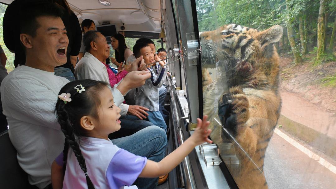 游客在碧峰峡景区体验投食老虎 雅安市融媒体中心供图