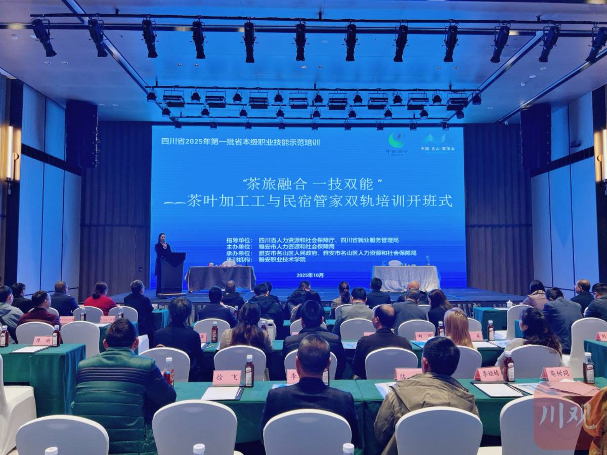 四川在线(雅安频道 廖诗雪)10月25日,四川省2025年第一批省本级职业技能示范培训——“茶旅融合一技双能”茶叶加工工与民宿管家双轨培训在雅安市正式启动。本次培训创新采用“揭榜挂帅”方式举办,精准对接行业与重点群体需求,是近十年来省内职业技能培训模式的一次重要突破。