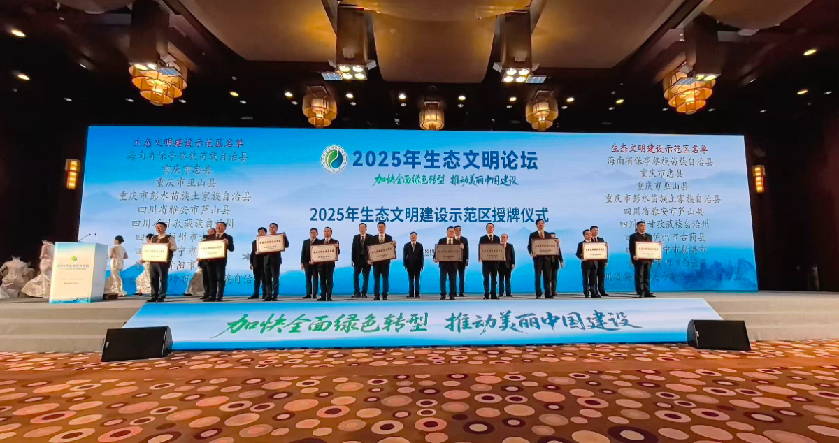 从“竹经济”到“熊猫IP”,再到“冷水鱼”……一块块扎实的生态拼图,在芦山渐次铺展,最终拼成了一幅获得国家肯定的“绿色答卷”——就在这一天,2025年生态文明建设示范区授牌仪式在北京举行,芦山被授予“生态文明建设示范区”。从昔日依赖“三头经济”的粗放发展,到如今生态产业多元发展的绿色转型,芦山坚定走出一条“在发展中保护、在保护中发展”的和谐共生新路。
