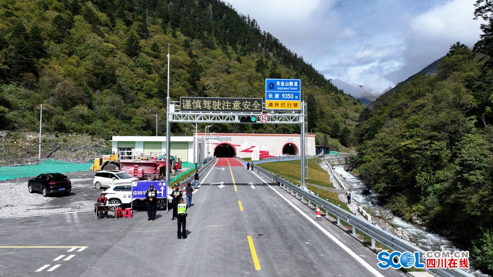 四川在线(骆驿 樊仕江 雅安频道 黄刚廖诗雪)10月1日,国道351线夹金山隧道正式开放试运行。隧道两端人头攒动,不少群众聚集于此,见证这一历史性时刻。现场,许多车辆排起长队,等待成为首批穿越这条“长廊”的幸运者。