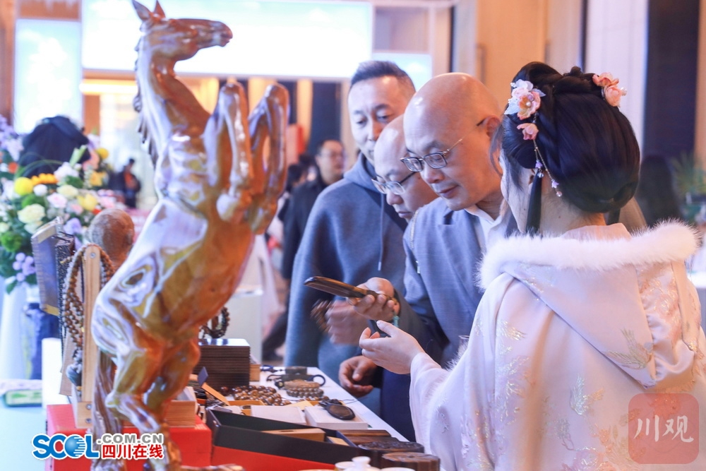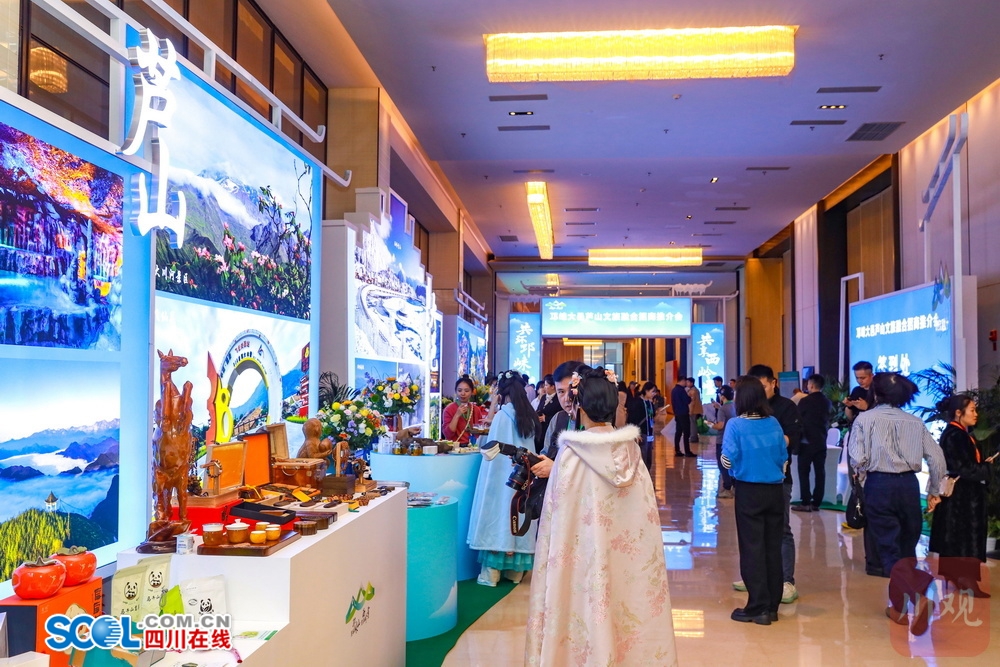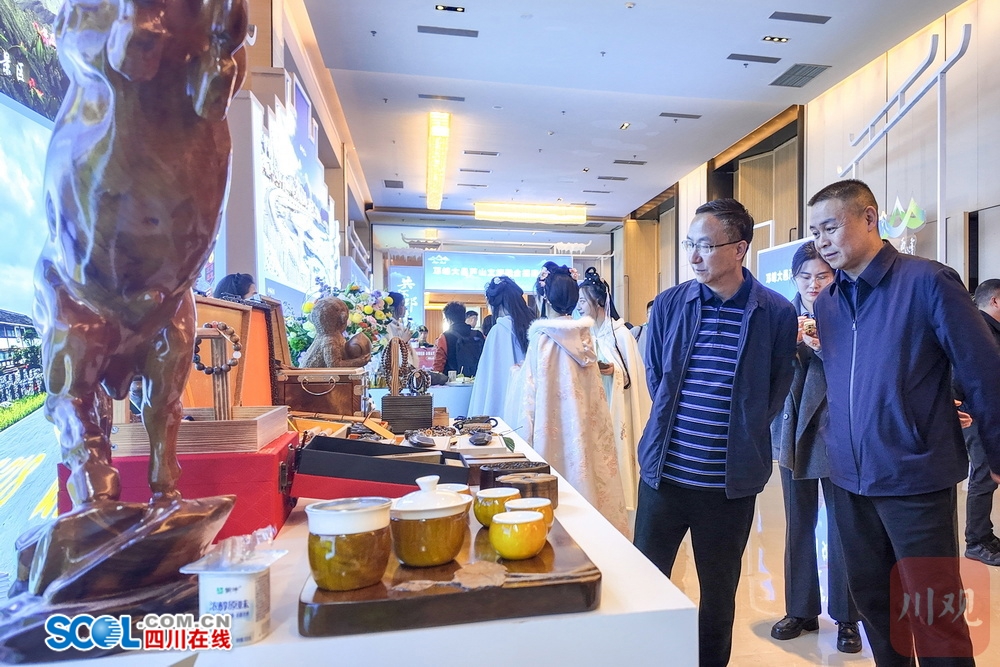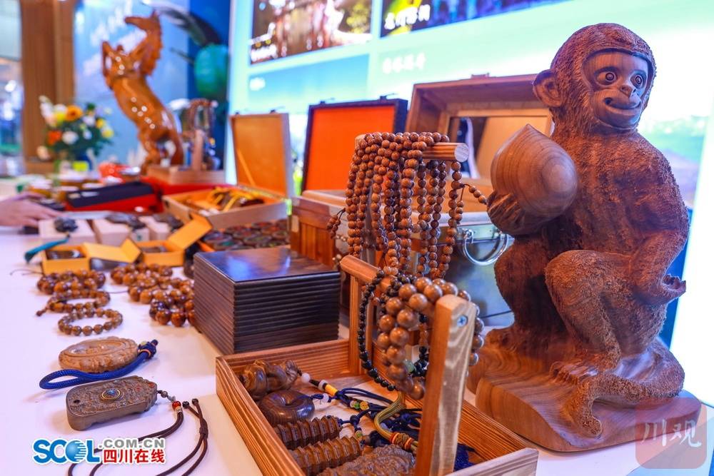 邛崃非遗竹编、大邑文君美酒、芦山金丝楠木雕……会场内掌声连连,会场外的三地特色文旅产品展览也是引人留步。一起看看三地分别亮相了哪些好东西!