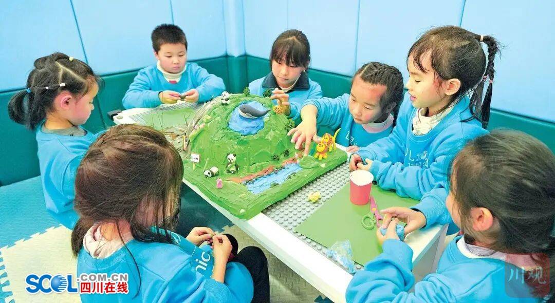 “这片叶子代表‘节水’承诺,那片是‘不扔垃圾’的约定!”9岁的王月一边将黏土制作的树叶轻轻贴在绿植区,一边认真地解释。她已和同桌约定担任“班级环保监督员”,“我们要让大熊猫的家一直这么绿,让青衣江的水永远像雅雨那样清澈!”