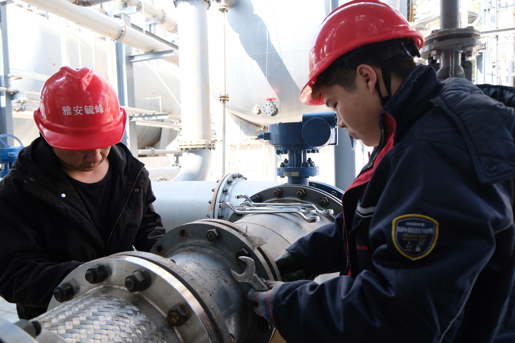工作人员在调整机器