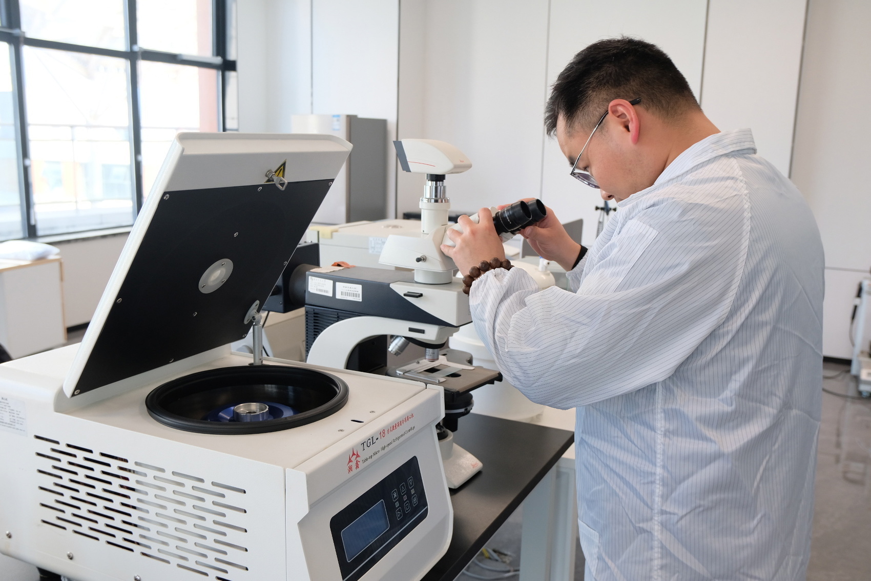 在雅安科技创新综合体内,吾一碳纤维科研人员正调试设备