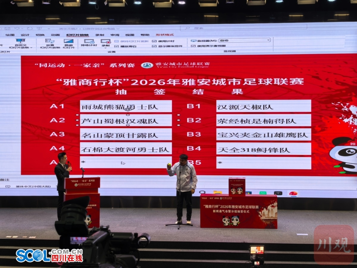 四川在线(雅安频道 张超刘静茹)3月2日,“雅商行杯”2026年雅安城市足球联赛新闻通气会暨分组抽签仪式举行,参赛队伍正式落位分组,这场贯穿春夏的全民足球盛宴,将于3月7日正式揭幕。