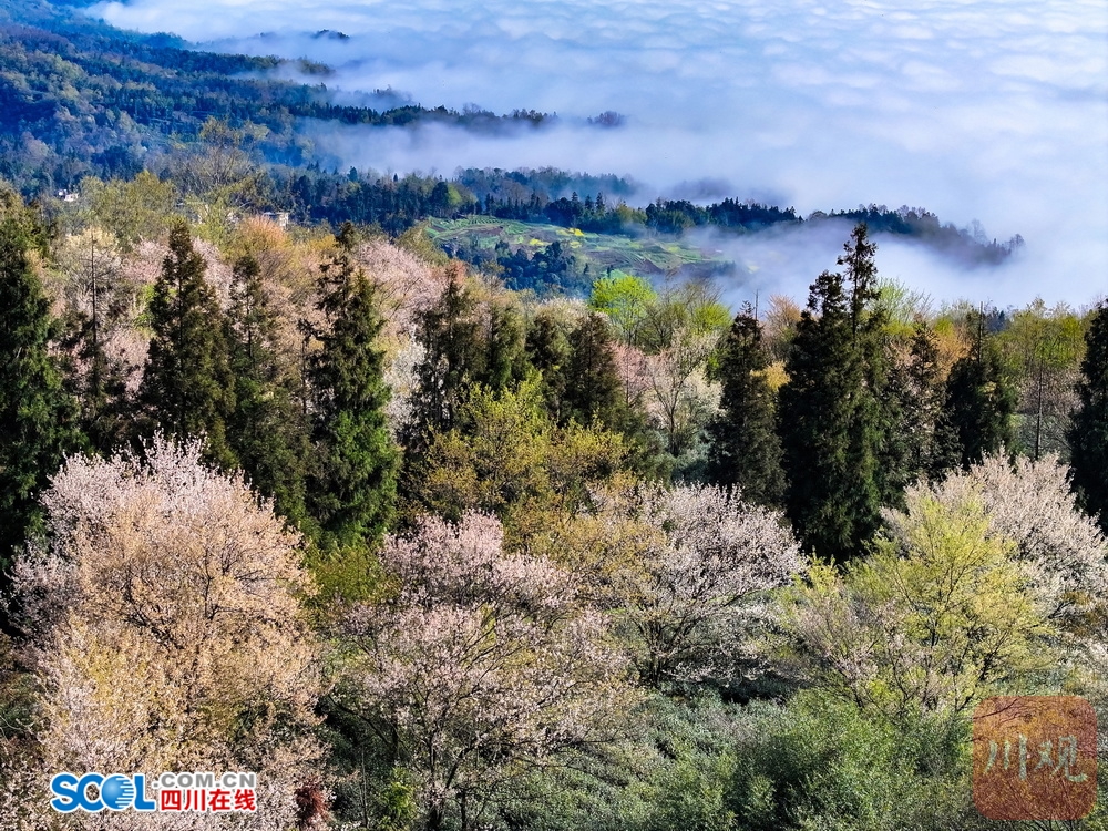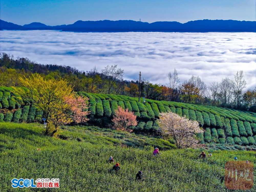 视频和图片为3月4日清晨,漫山的野生樱花群与浩瀚的云海、茶园、青山交相辉映,满目春色。