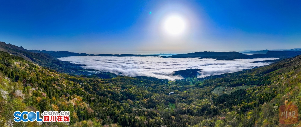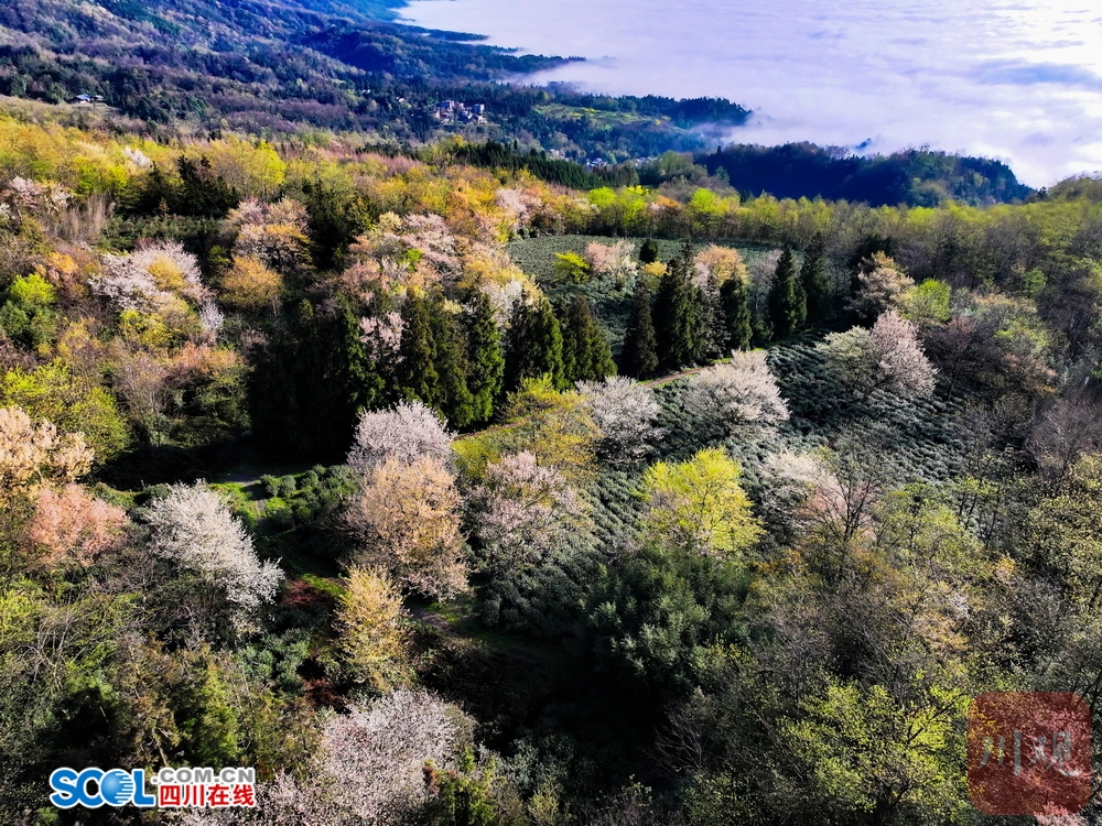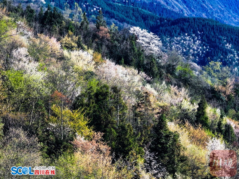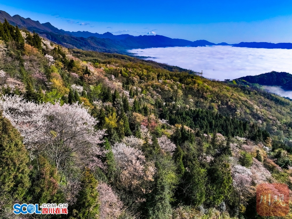 四川在线(雅安频道 黄刚)灿若云霞上野樱,迎春一树满天星。随着气温的变暖,位于雅安市雨城区碧峰峡镇关山上(小地名)的万亩野生樱花提前绽放。放眼望去,粉白相间的花浪顺着山脊起伏,像一场倒灌的春雪,美不胜收。