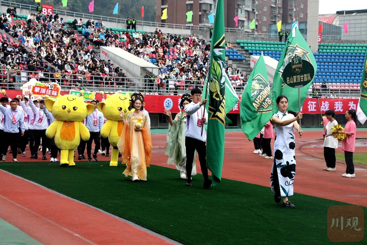 赛前的开幕式也是别具一格。入场仪式上,蒙顶仙茶、芦山花灯、非遗黑砂等代表各地的文化特色轮番登场,将现场气氛推向高潮,参赛队伍也正式亮相。