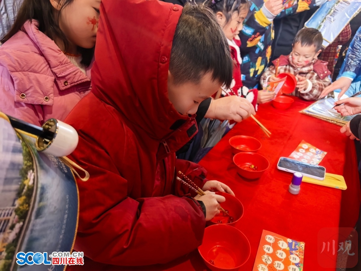 游园区域更是笑声不断。夹弹珠、蒙眼击鼓、新年脸绘等经典游戏前围满了大小朋友,便民服务区提供健康咨询、义剪等暖心项目,而写春联、拓福字等文化摊位则飘散着墨香与祝福。其中,“七雅美食”品鉴区人气尤旺,居民们在品尝本土特色美味的同时,也感受到“雨城味道”里蕴含的温情。