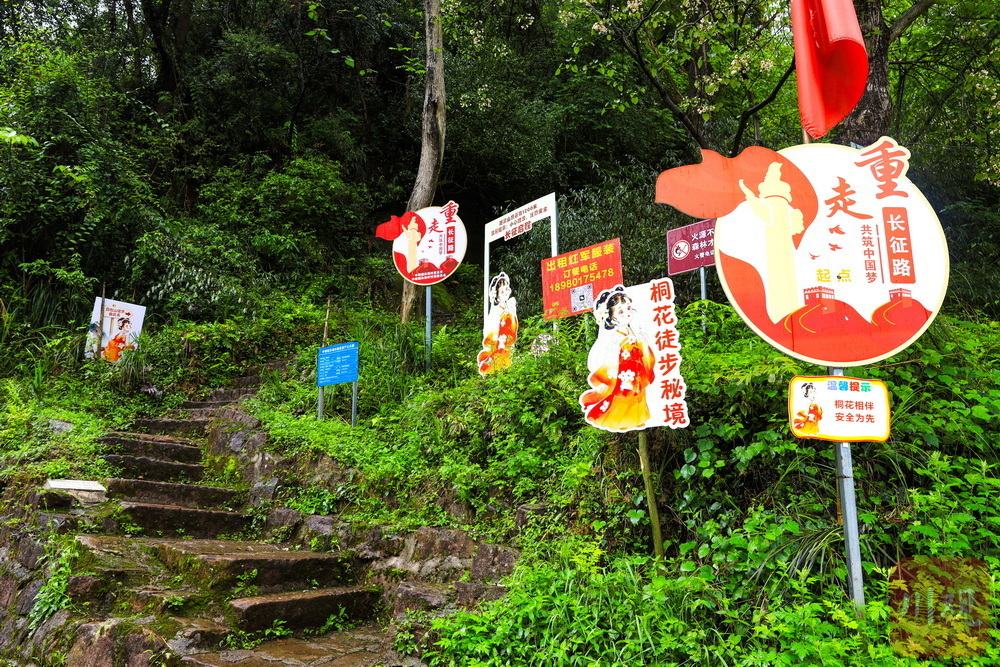 “我们刚刚举办了桐花徒步秘境活动,上千人前来打卡。”朱场村相关负责人介绍,四包山有四个主峰,大小相近、高低持平,主峰中段由小山丘相连,因形似“四包”而得名。这里是红军长征时期的重要战斗遗址,春日里的油桐花海更是一绝。