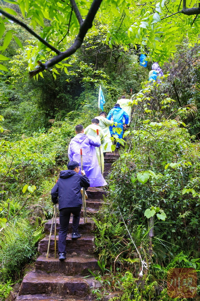 岩登山石梯一路向上,虽然遇上下雨天气,山间的油桐花也已开始凋零,但前往打卡的游客依旧络绎不绝。