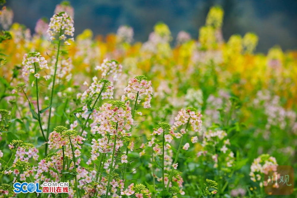 这也引起不少人好奇,油菜花是怎样从“黄色”变成“彩色”的?“目前国内油菜花大致有红、白、紫、粉、橙、黄、绿等色系,以目前科研成果为代表的细分颜色有水粉红、纯紫色、浅梅红等70种左右,堪称是春天里的天然油画棒。”四川农业大学作物育种专业的博士李德强解释,油菜花变色主要通过“杂交”完成,而这个“杂交”的对象,就是和油菜花同为十字花科、基因组接近的萝卜、紫甘蓝、二月兰等。
