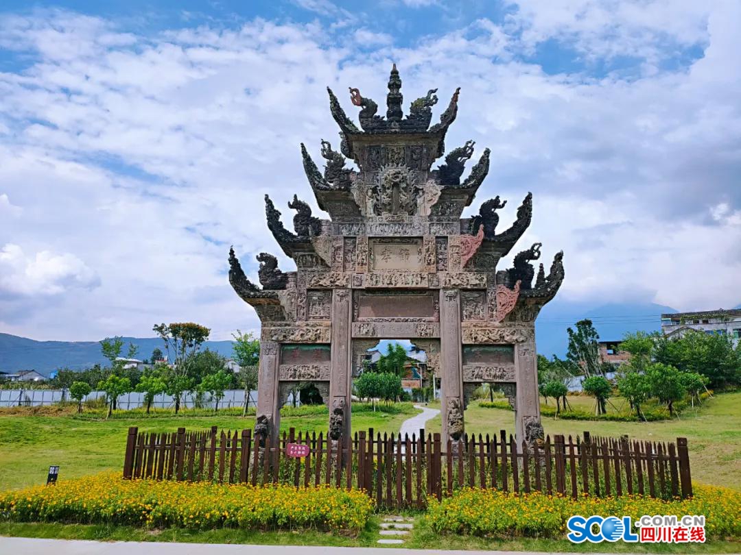 花海果乡景区所在的九襄古镇,是茶马古道与丝绸之路的交汇点,老街文化与巍峨石牌坊诉说着往昔繁华。