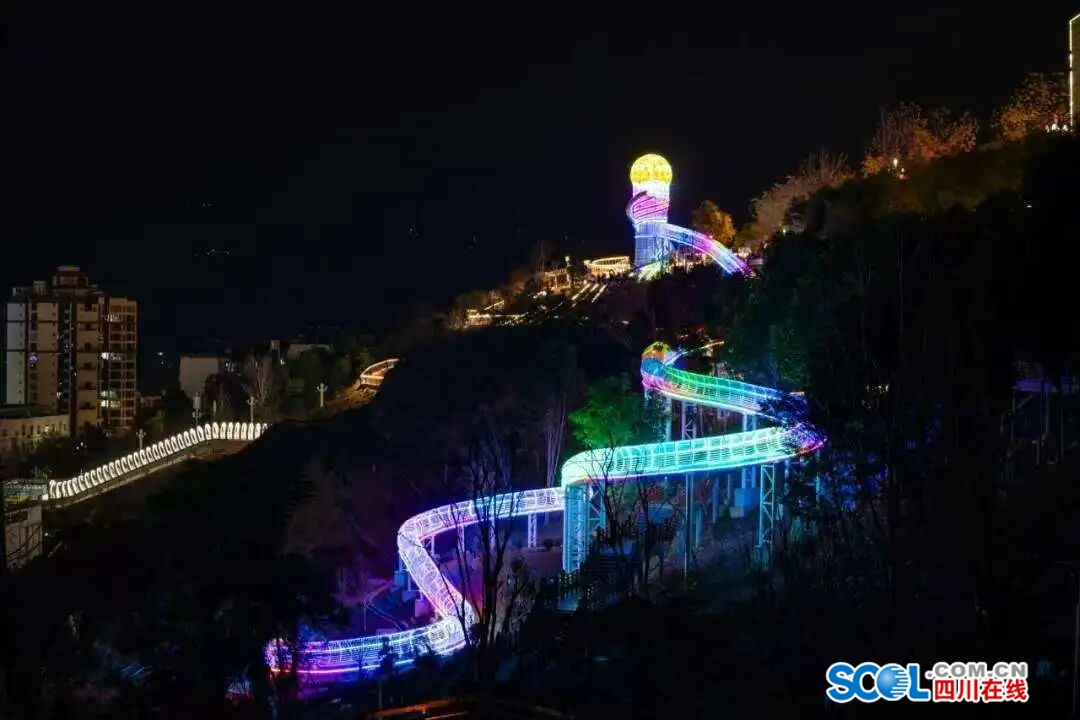 接着走进体育公园,在时空走廊感受科技光影下的湖城夜景,或在七彩滑道上体验风驰电掣。