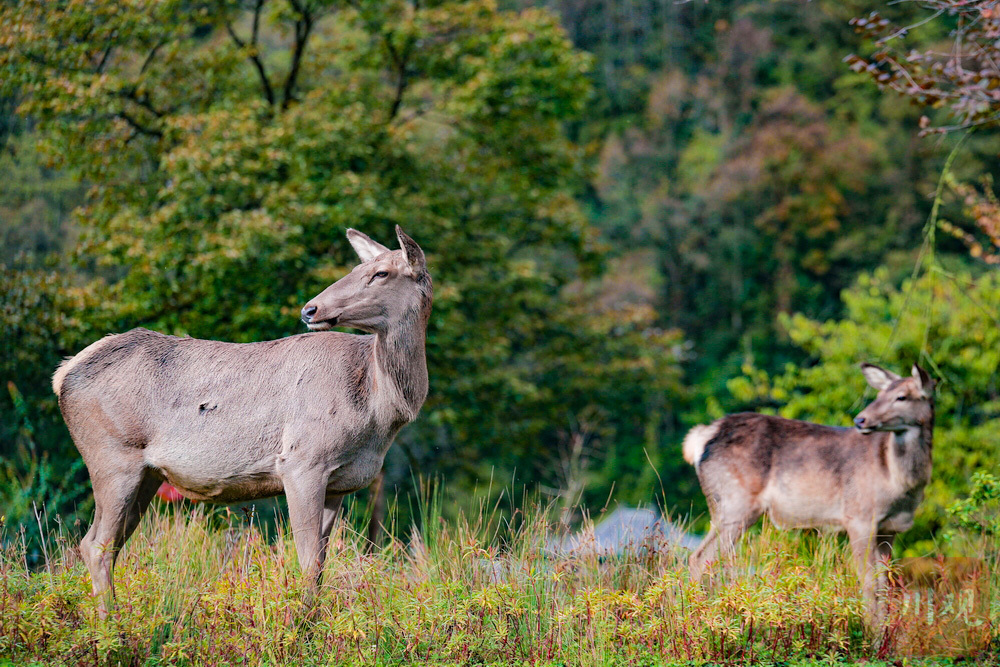 作为喇叭河的精华所在,西线是观赏彩林、邂逅野生动物的最佳路线。清晨,在索道下站附近,常能近距离看到小熊猫在枝头觅食,羚牛、水鹿群悠闲漫步,川金丝猴在树梢晒太阳。沿途还可欣赏海拔2400米的高山湖泊——鹿池,池水碧绿如镜,与周围渐变的彩林相映成趣。红石滩的橙色苔藓、青石板路上的鹿群足迹,更添几分秋日秘境之感。