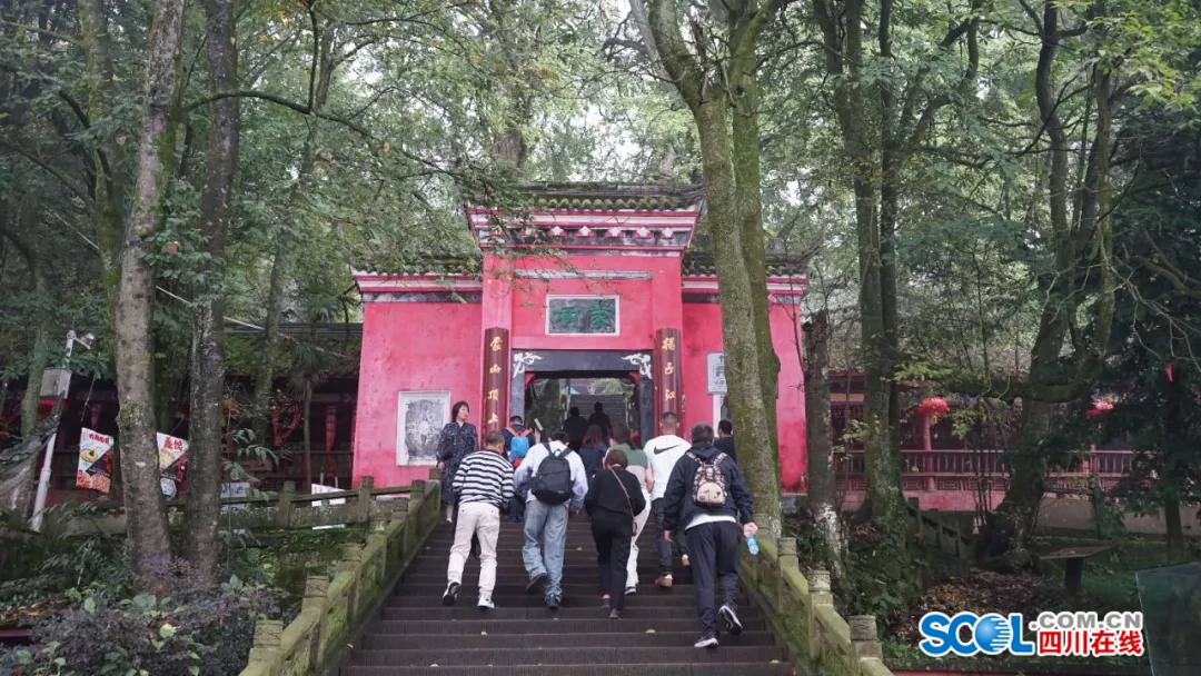 而距百丈湖不远处的蒙顶山,不少游客选择清晨徒步登山,徜徉在薄雾轻柔笼罩下的茶山之中。在天盖寺,景区精心打造的非遗“龙行十八式”、“天风十二品”和快板表演轮番登场,让游客在视听盛宴中感受茶文化的深厚底蕴。