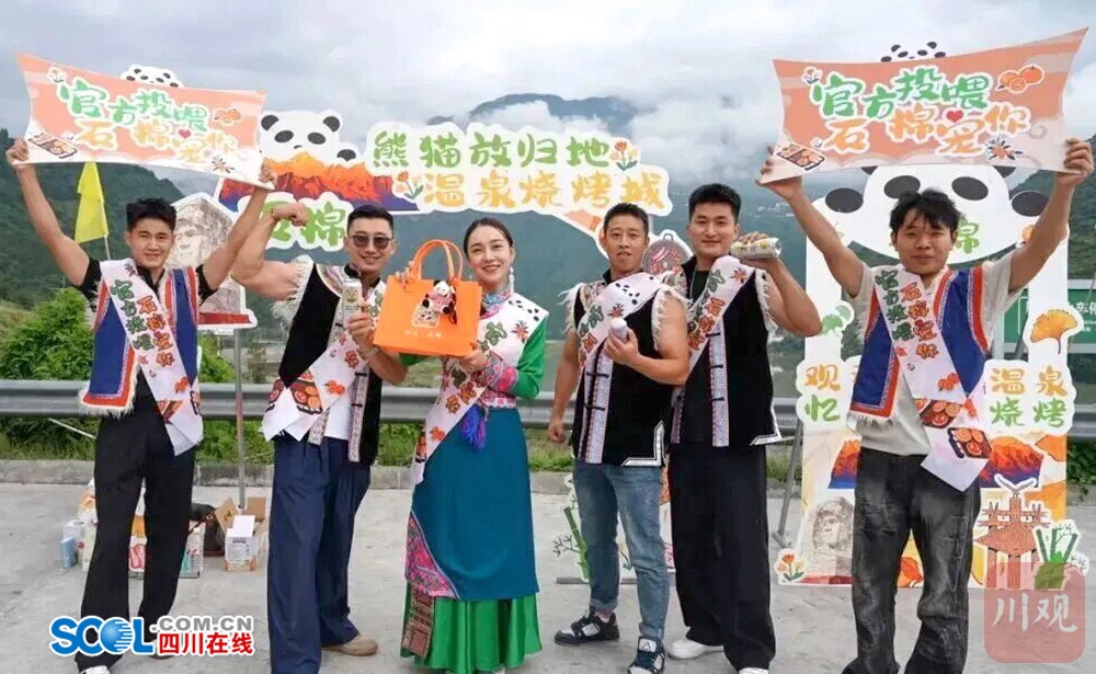 印有“石棉”“熊猫放归地温泉烧烤城”等字样及本地特色景点与美食的打卡墙成为焦点。游客完成拍照打卡后,工作人员将黄果柑啤酒、定制文创包、传统枇杷膏等石棉特色农特产品送到游客手中。据统计,石棉县国庆“投喂”活动首日共派发消费券1000张、黄果柑啤酒180罐、文创包400个、枇杷膏1000条,覆盖游客超千人次。
