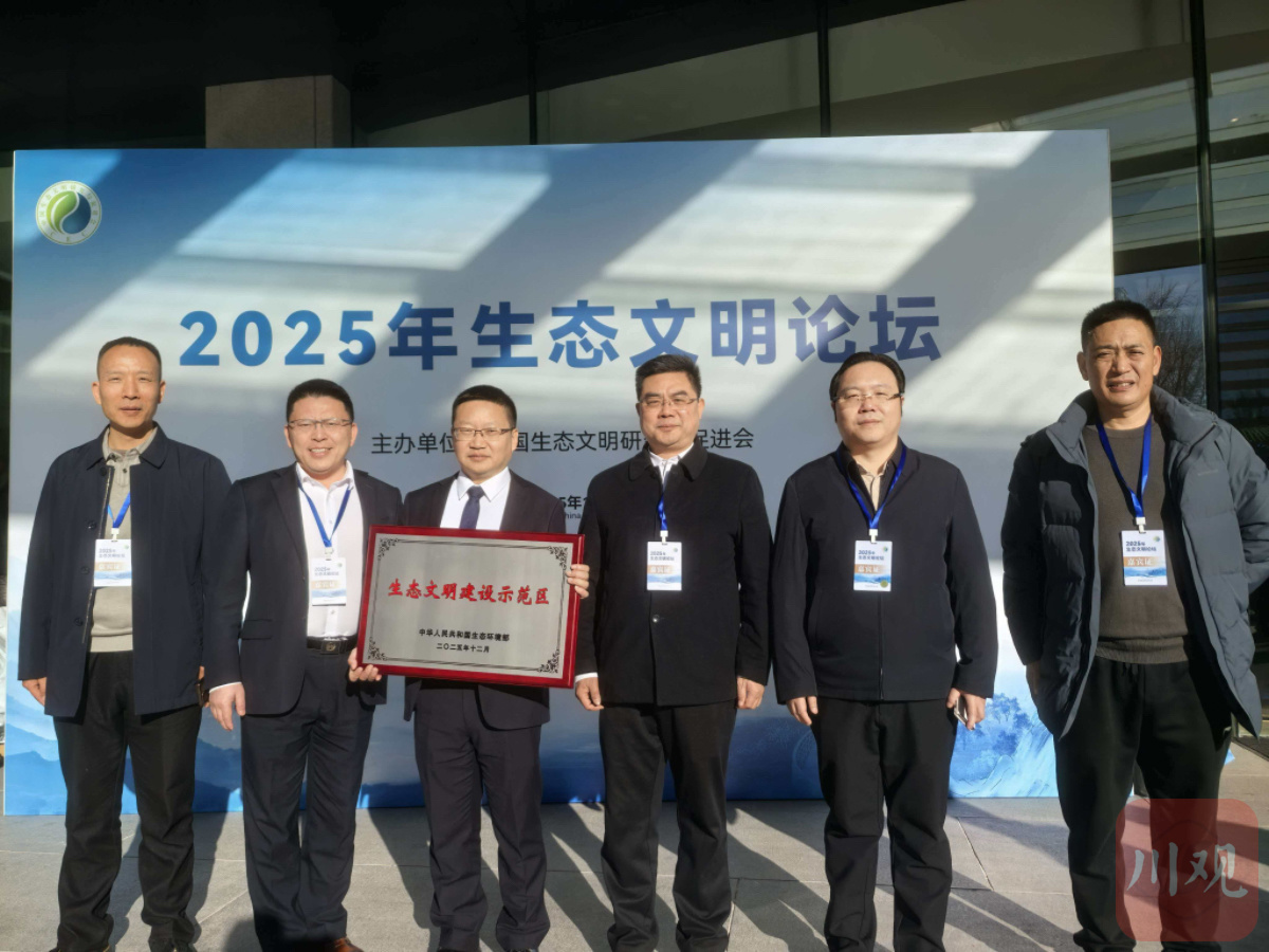 从“竹经济”到“熊猫IP”,再到“冷水鱼”……一块块扎实的生态拼图,在芦山渐次铺展,最终拼成了一幅获得国家肯定的“绿色答卷”——就在这一天,2025年生态文明建设示范区授牌仪式在北京举行,芦山被授予“生态文明建设示范区”。从昔日依赖“三头经济”的粗放发展,到如今生态产业多元发展的绿色转型,芦山坚定走出一条“在发展中保护、在保护中发展”的和谐共生新路。