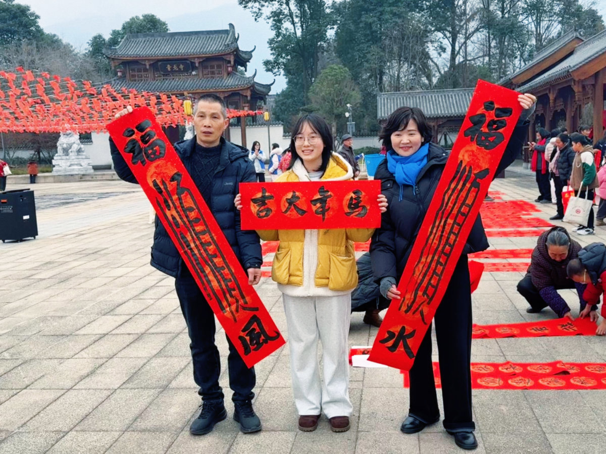 四川在线(雅安频道 廖诗雪 刘静茹)2月4日,立春,雅安市芦山县龙门镇青龙寺外,地上铺满了一幅幅待干的春联,红彤彤一片,不少市民游客正等着领取这份“年味”。排队的人群中,芦山县书法协会会员杨明慧的“摊位”前尤为热闹。