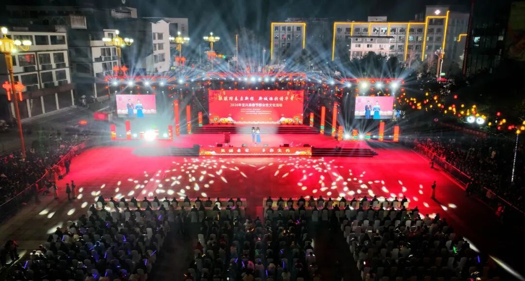 四川在线(雅安频道 黄刚)2月9日晚,以“骐骥踏春启新程 新城焕彩谱华章”为主题的2026年宝兴县春节群众性文化活动在该县灵关镇举行。活动分为“栉风沐雨 春华秋实”“骐骥腾跃 锦绣画卷”“踏春启程 共赴华章”三个篇章,为现场观众献上了一场集艺术欣赏、成就展示与未来展望于一体的新春文化盛宴。
