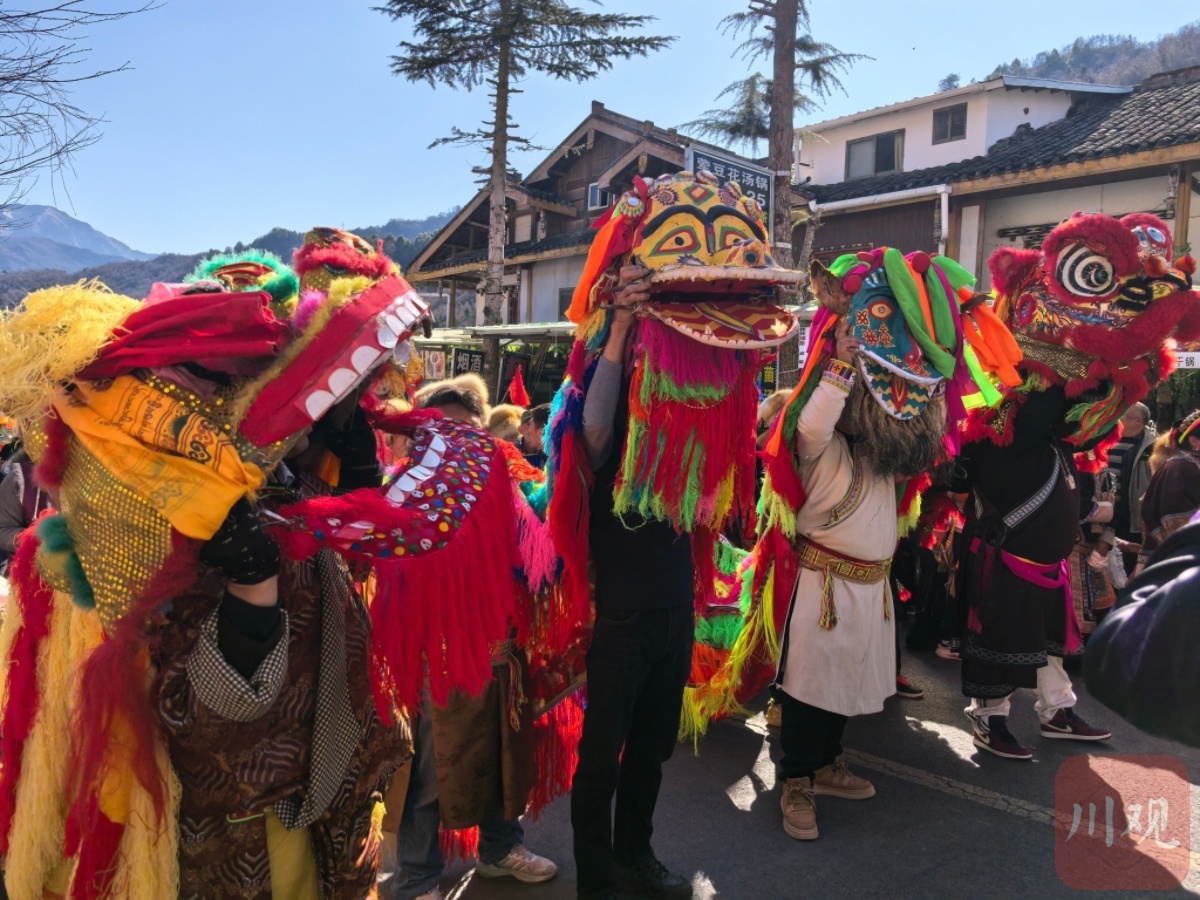 四川在线(雅安频道 刘静茹廖诗雪)“拜年啦!”2月25日,雅安市宝兴县硗碛藏族乡,龙灯、牛灯、狮灯在游客镜头前摇头摆尾,向现场上千名游客送上地道的藏乡祝福。