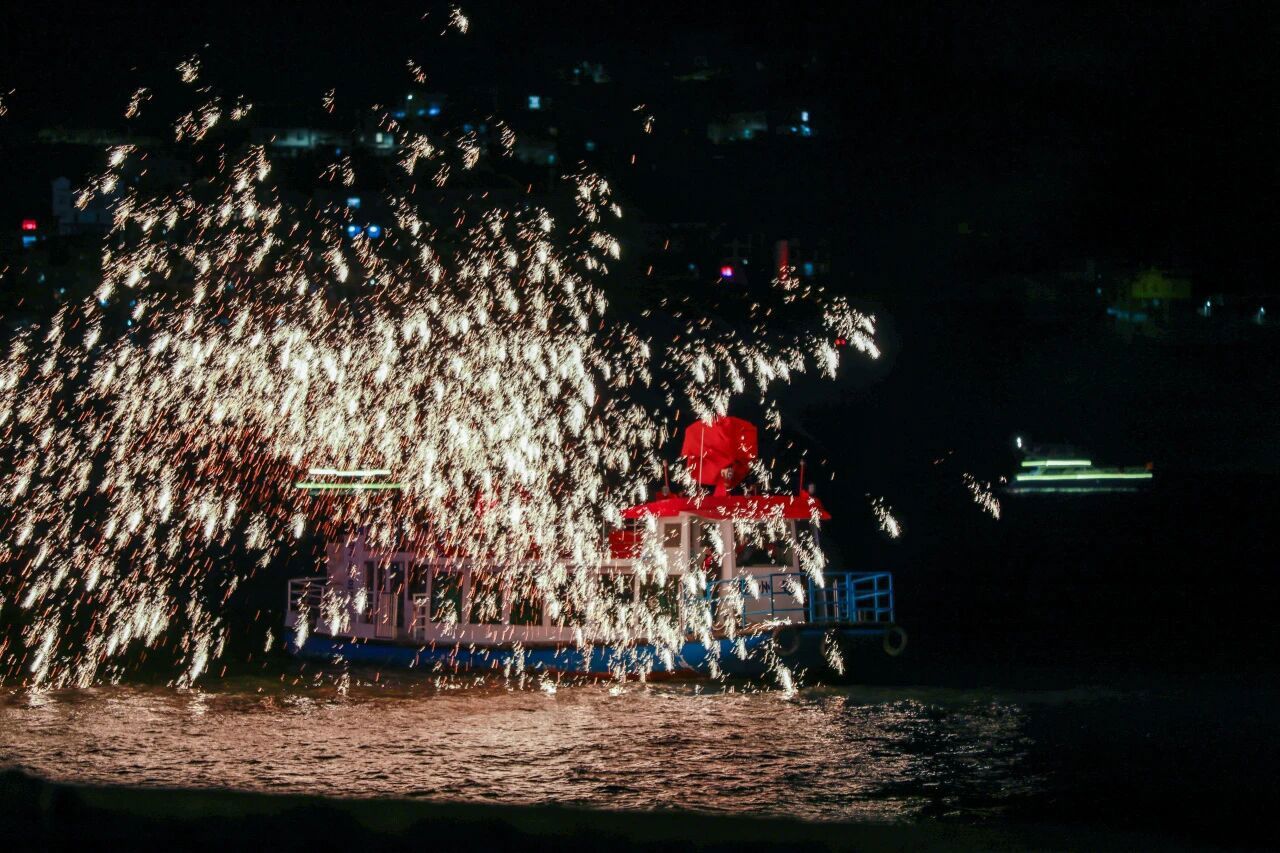 在九襄镇的花神广场,“十二仙子”衣袂飘飘,正为解谜的游客轻声提示;不远处的三强村田垄边,一群成年人挽起裤腿、弯腰摸鱼,溅起的泥点落在笑声里;待到夜幕降临,汉源湖上,火壶翻转、铁花如雨,把夜空染成金色。