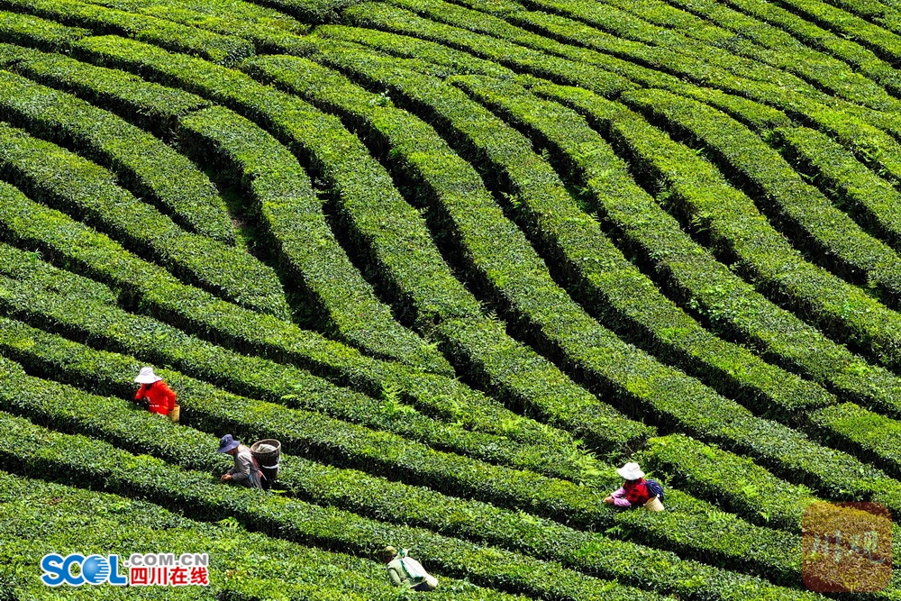 四川在线(雅安频道 黄刚)一缕茶香出高山。4月18日,雅安市宝兴县,深山中春意正酣。走进灵关镇云茶、建联等村落,连片的茶垄随着山势起伏,宛如碧波荡漾。村民们腰挎竹篓穿梭其之间,手指翻飞间捻采下一叶叶鲜嫩的茶芽,一派繁忙的丰收景象。