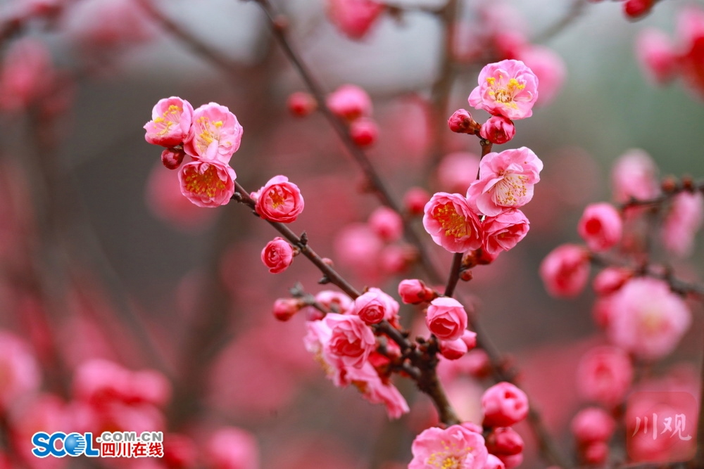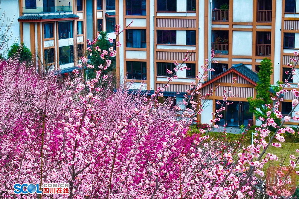 四川在线(雅安频道 黄刚)2月10日,雅安市名山区,蒙顶山脚的十里梅香·茶源小圳、花间堂·茶马司、市民活动中心和梅花谷精灵乐园内,连片的梅树开正盛,汇聚成一片粉色秘境。微风轻拂,清冽的梅香与山间寒意交织,吸引众多市民与游客循香而行,赴一场早春时节的“梅”好之约。