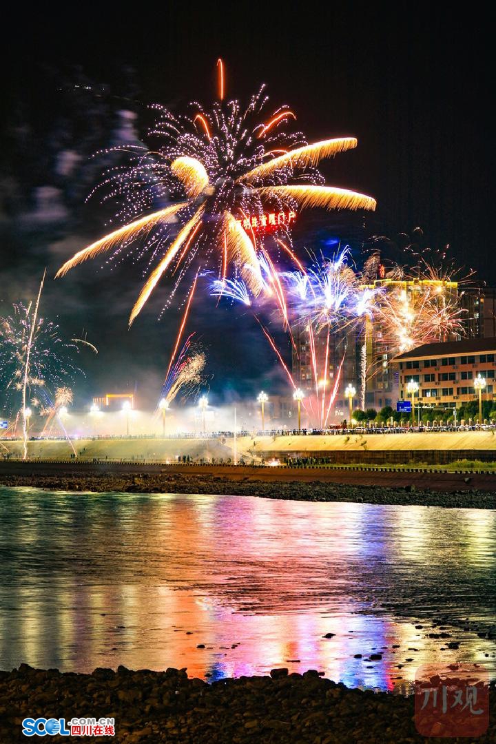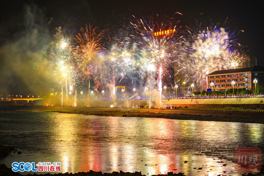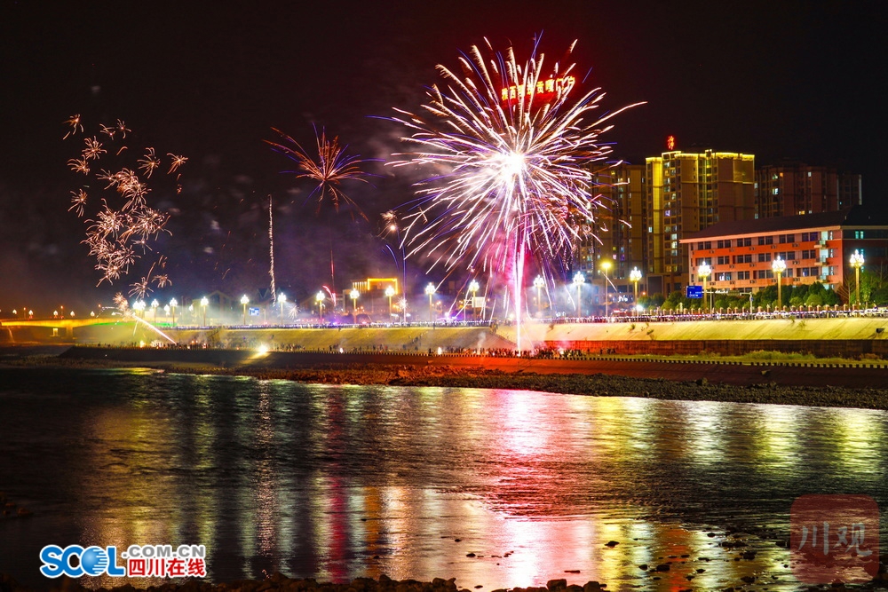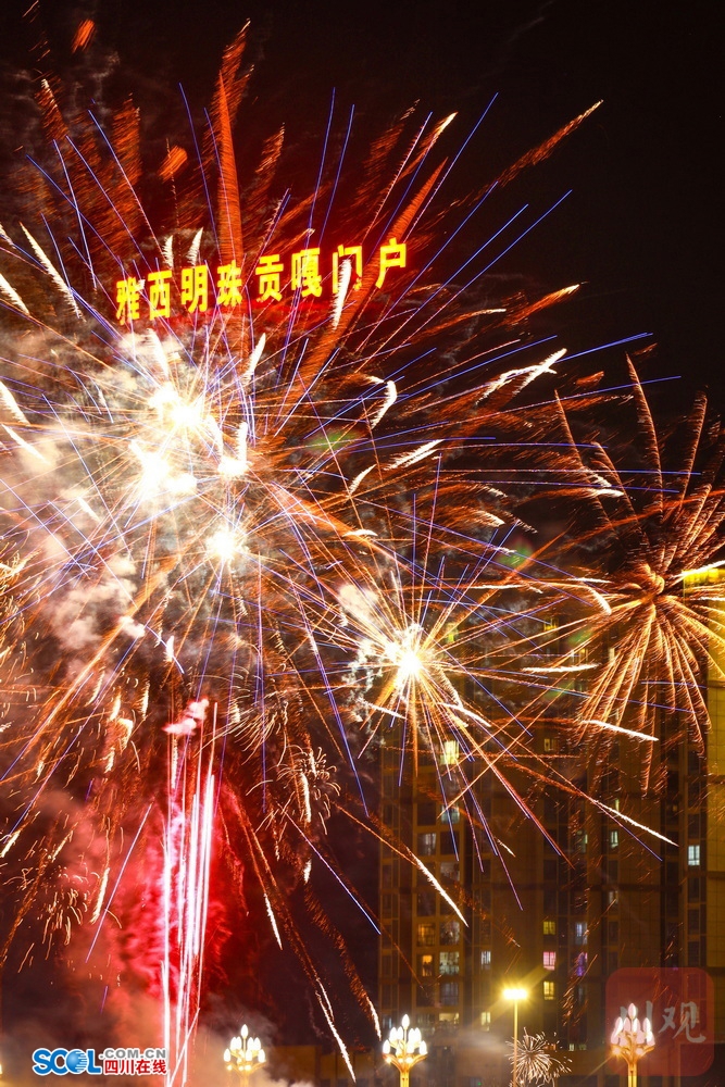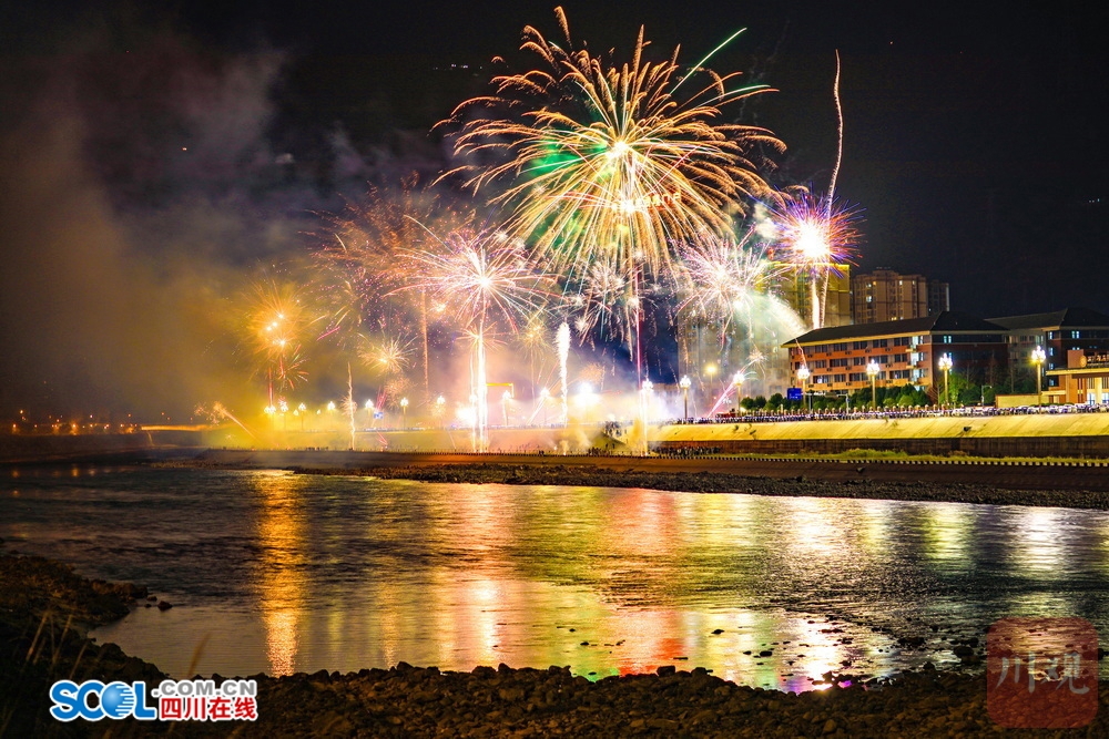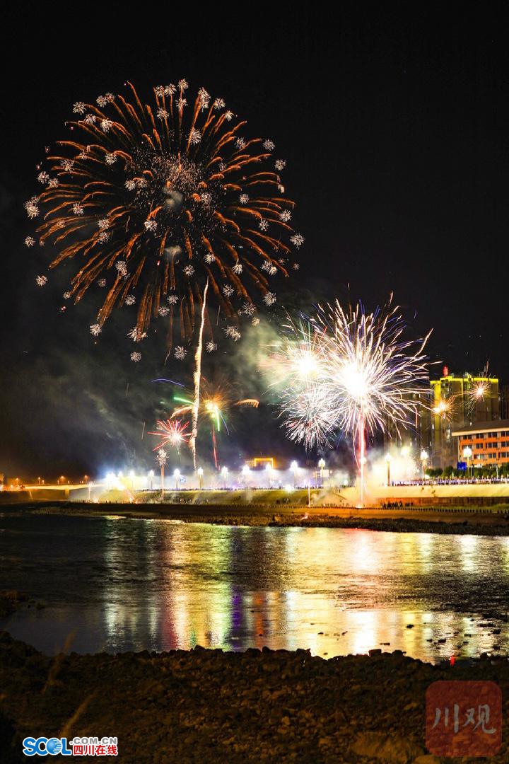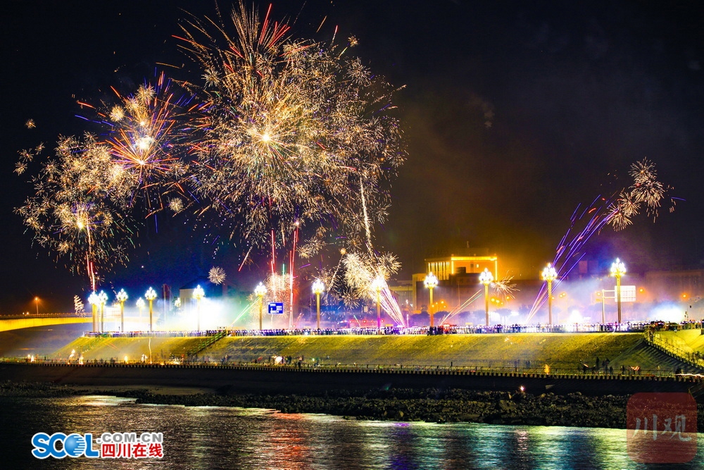 四川在线(雅安频道 黄刚)2月17日凌晨,随着马年春节的到来,一场璀璨的烟花秀在大渡河畔的雅安石棉县上演。朵朵烟花带着浓浓年味儿惊艳“绽放”,为市民和游客带来了一顿璀璨的“年夜饭”。