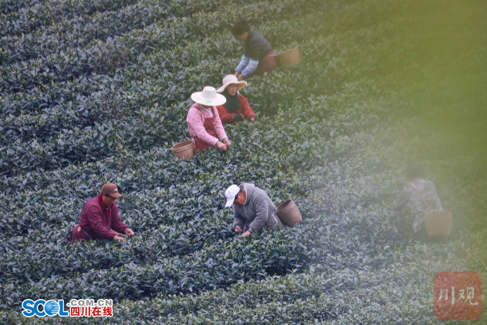 天未亮,茶已香!进入3月,名山区39.2万亩茶园迎来春茶大规模采摘,像红星镇茶山这样繁忙的茶事在蒙顶山下各处茶园上演。