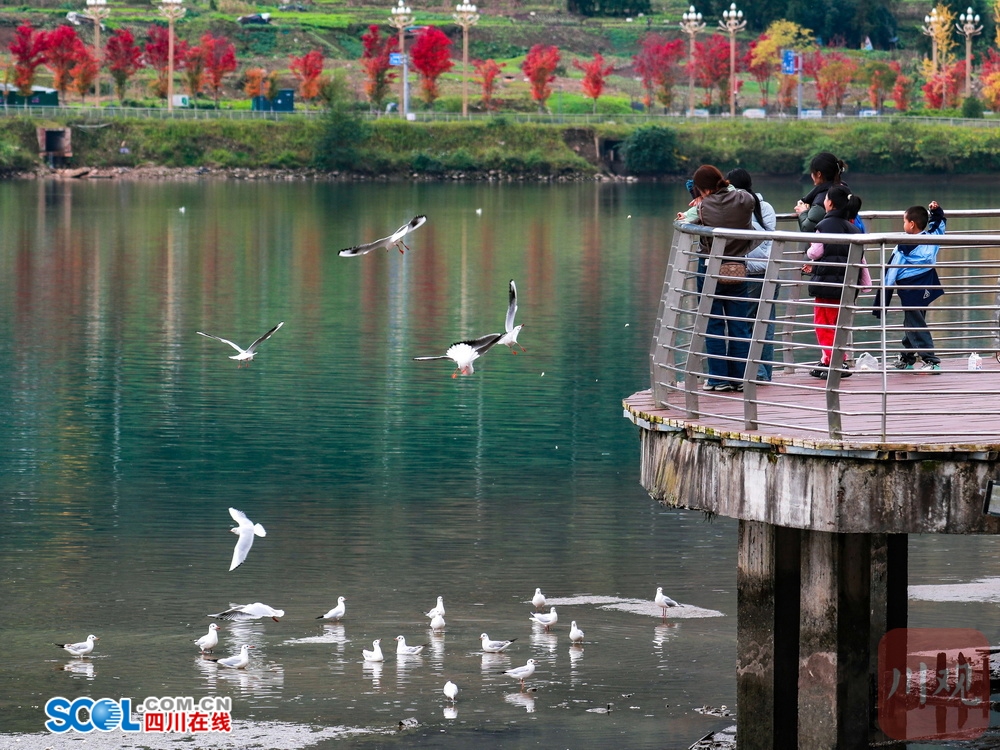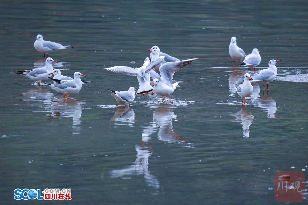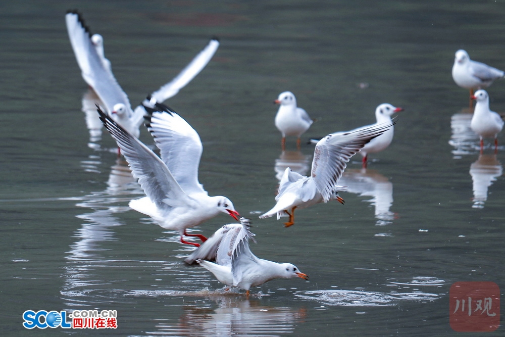四川在线(雅安频道 黄刚廖诗雪 记者 李婷)11月6日,雅安市天全县龙湾湖畔,成群的红嘴鸥化身“空中干饭王”,围着投喂的游客上演精准接食的绝活,互动感直接拉满。