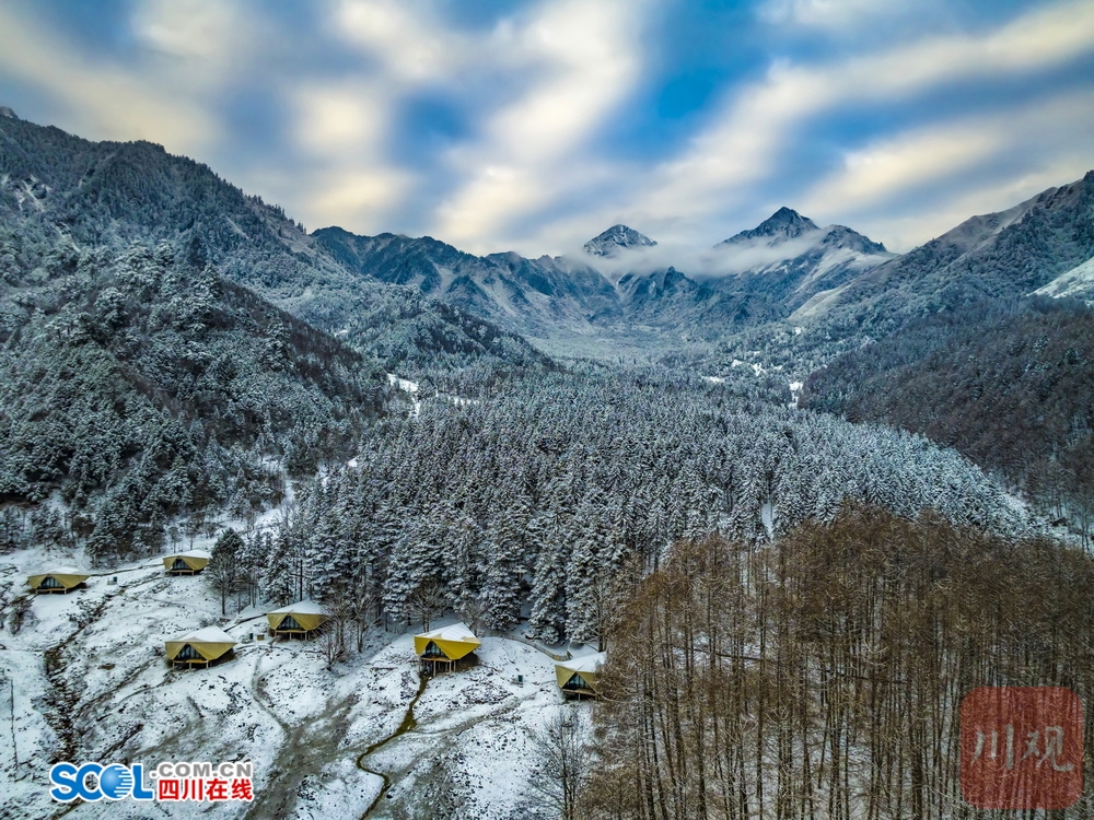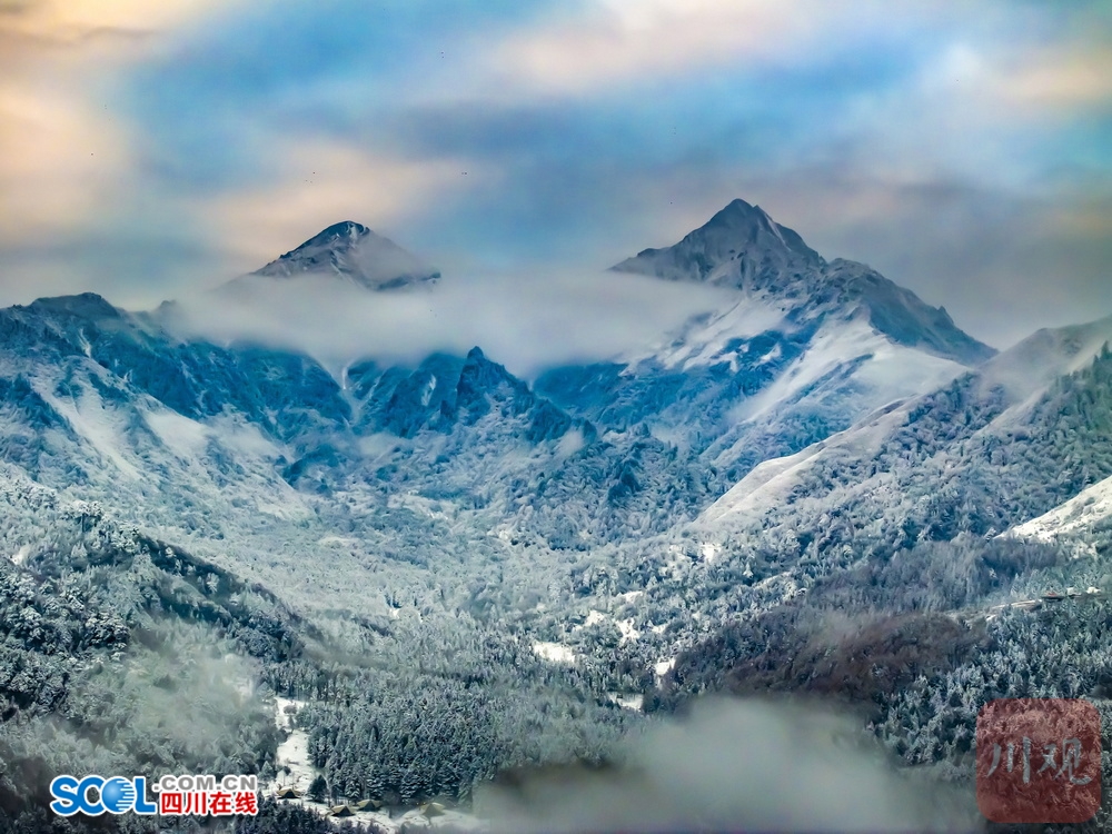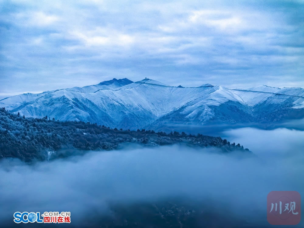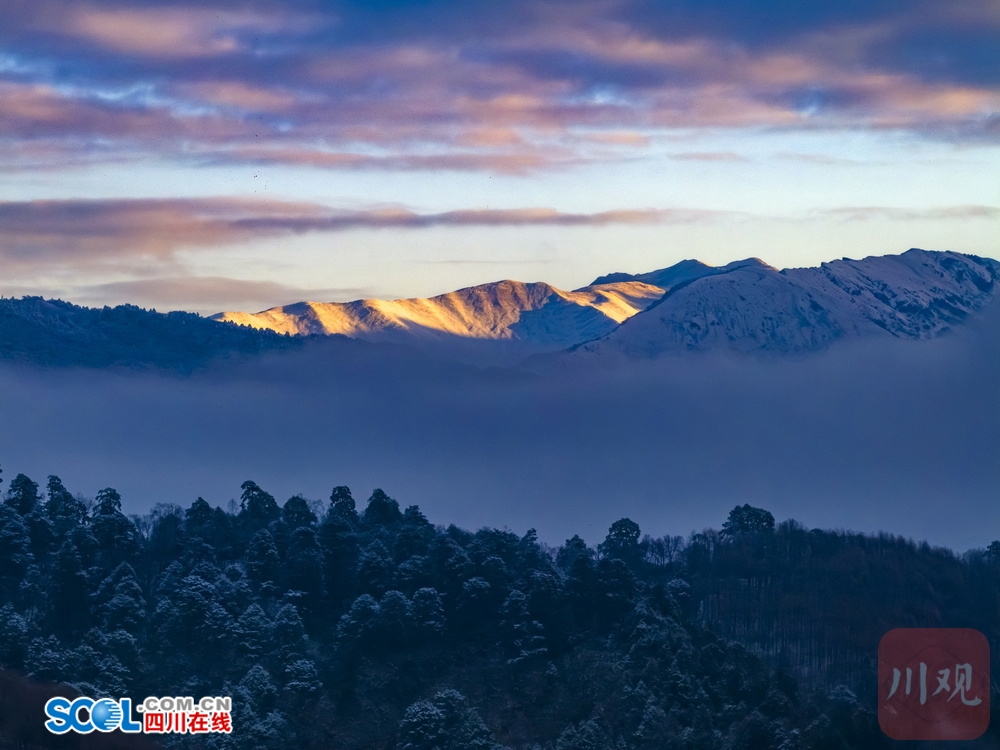 四川在线(雅安频道 黄刚 记者 李婷)1月7日清晨,雅安市宝兴县夹金山山下,硗碛藏寨和神木垒景区雪后初霁,透过无人机镜头看到,连绵的雪山和银装素裹的“森林雪原”被云雾缠绕,日照金山、云海雾凇等景观一一呈现,夹金山下的诗意晨曦,令人心旷神怡。