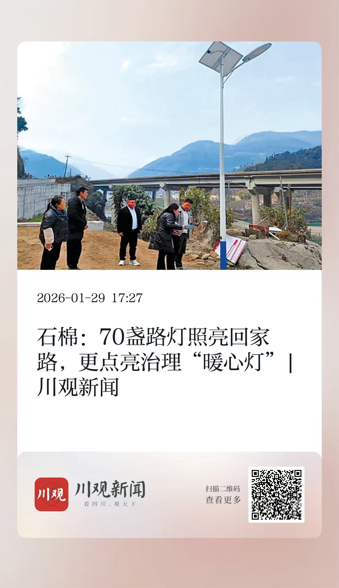 2、石棉:70盏路灯照亮回家路,更点亮治理“暖心灯”