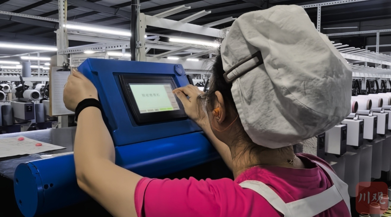 “只有工人换络筒、络纱操作时,对应机组上方的灯才打开,其他时候,机器都自动生产,不需要开灯。”邦源科技负责人刘均臣称,等正在调试的机器人上岗,巡回时也不需要灯光,可以进一步降低能耗。